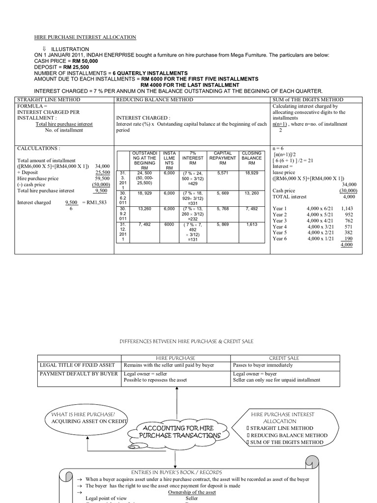 Example of a hire purchase scheme | Math, Financial ... from showme0-9071.kxcdn.com Interest is generally charged on the flat rate. In the case of hire purchase, the purchaser of the asset is required to the down payment initially and not the amount of whole selling price of the asset as the remaining amount after the down payment is paid in. Interest rates are calculated by taking a percentage of the principal amount owed on the loan. My own hire purchase agreement refers this as annual percentage rate of term charges. Different lenders will offer different rates and this contributes to the overall cost of the loan. Here is the video about how to calculate interest on hire purchase system, in this video we have discussed basics concepts of hire purchase system in. See how to calculate loan interest every month or over the life of a loan. Interest rates you need to compare the interest rates with any loan you take out.